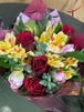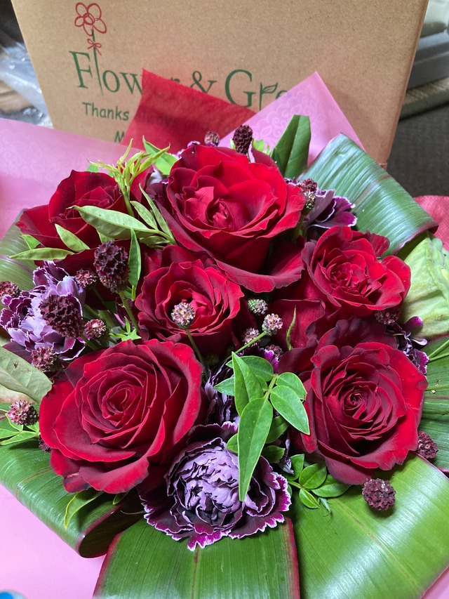 バラと季節のお花、グリーンでお作りするブーケをお届けいたします。